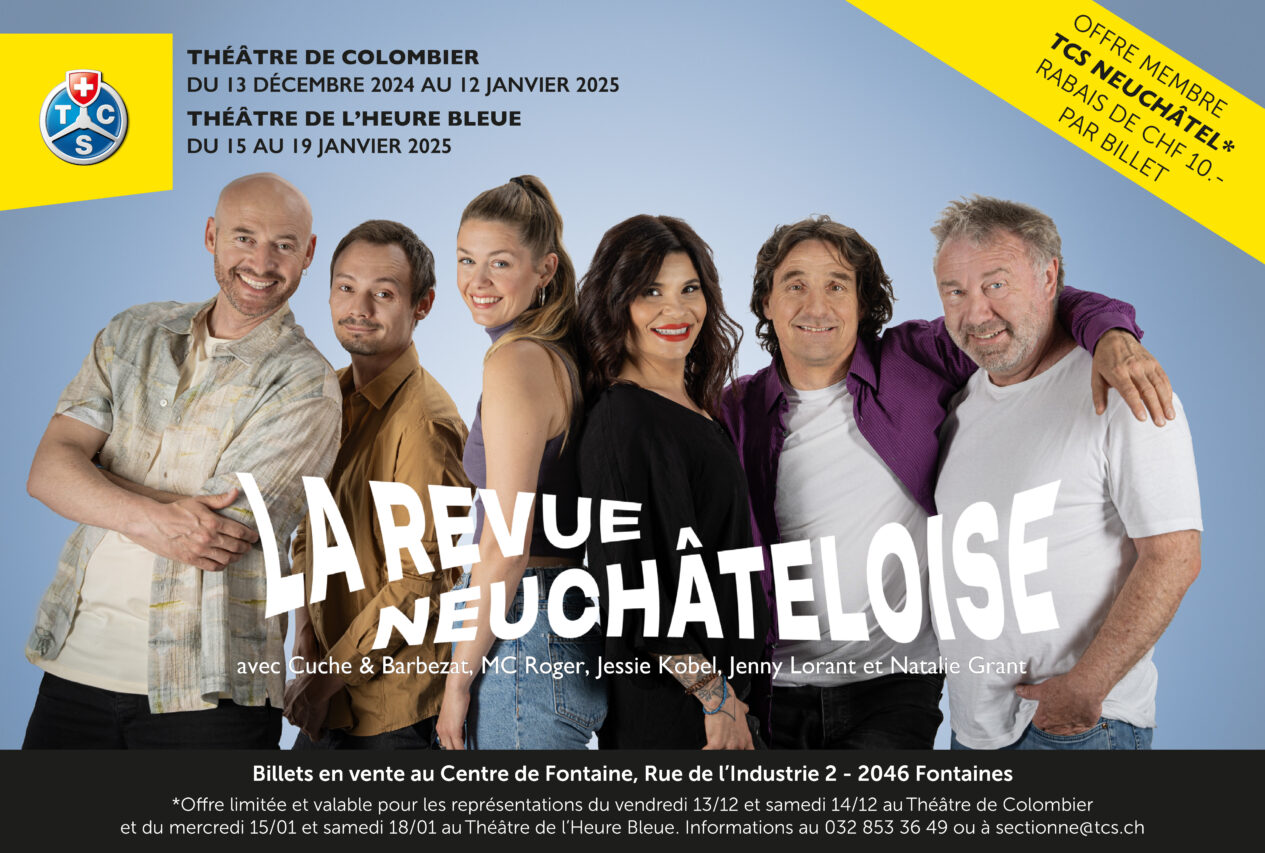 Venez découvrir la 4e édition de la Revue neuchâteloise, une expérience unique où l’ancienne et la nouvelle génération s’unissent pour vous offrir un spectacle exceptionnel !​ Grâce à une mise en scène moderne, rythmée et efficace, la Revue neuchâteloise vous promet une avalanche de rires et de surprises inédits. Revivez l’esprit de la Revue avec des sketchs sur des thèmes actuels et locaux.