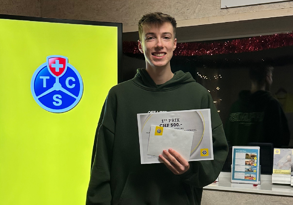 Le thème de ce concours annuel est : « J’ai 90 secondes pour vous dire… My vision, your safety ». Le défi : montrer en une minute et demie comment les adolescents perçoivent la sécurité routière. Avec son film, Noah Dohet a voulu sensibiliser avec humour les jeunes au danger du smartphone au volant. Tourné dans les hauts de Gorgier avec quelques copains, le clip sélectionné par notre section a également valu à son auteur un prix de 500 francs.